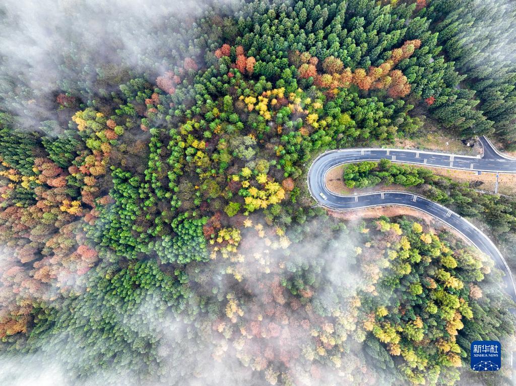這是10月31日在湖北省恩施土家族苗族自治州建始縣業州鎮拍攝的秋景(無人機照片)。 新華社發(張遠明 攝)