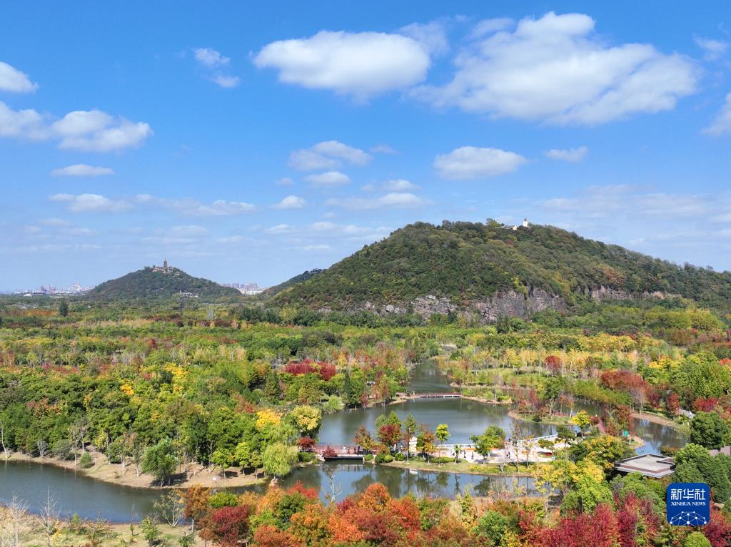這是10月29日在江蘇省南通狼山國家森林公園拍攝的秋景(無人機照片)。 新華社發(許叢軍 攝)