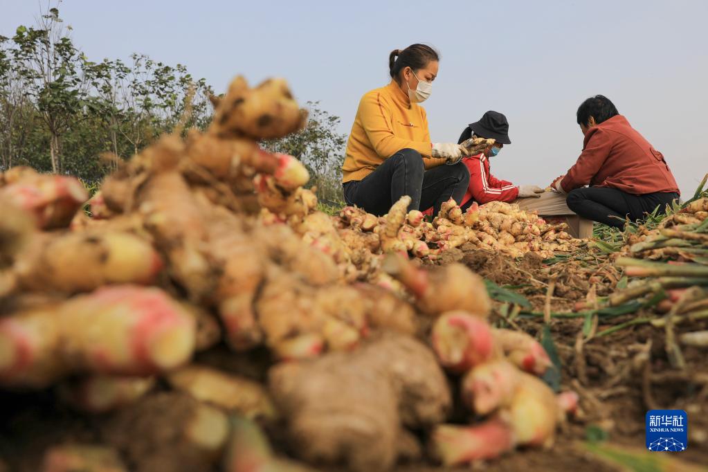 11月5日,河南省寶豐縣商酒務鎮柳林村村民在田間收獲生姜。