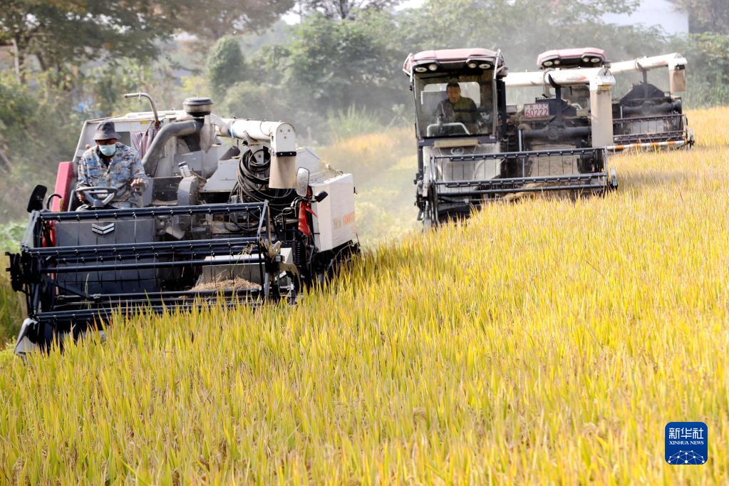 11月5日,浙江省湖州市德清縣新市鎮蔡界村,收割機在收割成熟的水稻。