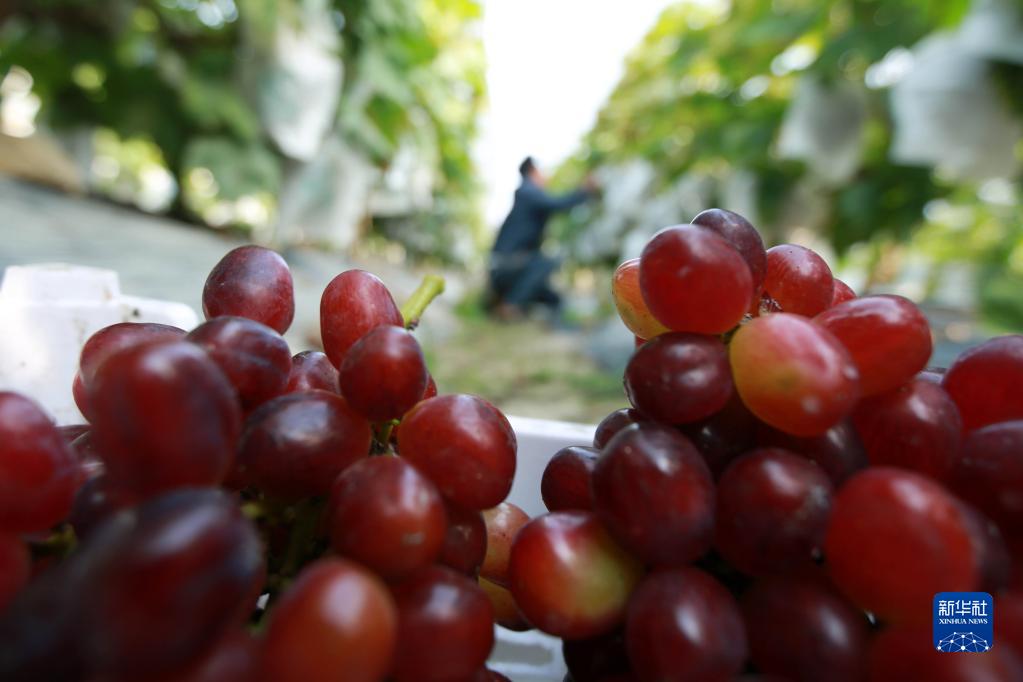 11月5日,果農在貴州省平塘縣平舟鎮葡萄園里采摘葡萄。