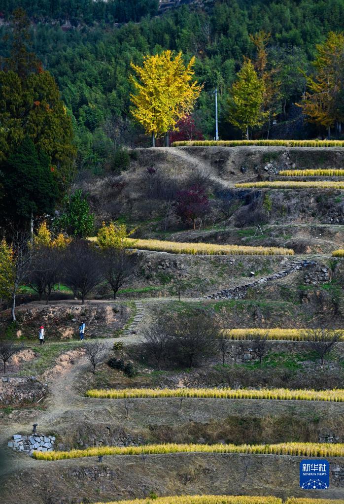 11月5日,游客在指南村的梯田里觀賞秋色。