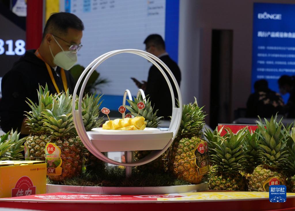 11月5日在第五屆進博會食品及農產品展區拍攝的菲律賓黑鉆鳳梨。