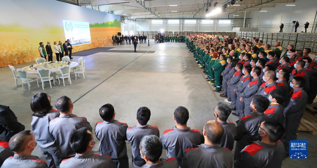 這是11月4日在白俄羅斯明斯克州拍攝的白俄羅斯國家生物技術公司全循環高科技農工綜合體項目投產儀式現場。