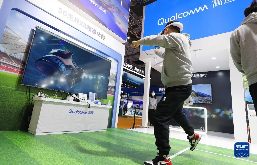11月5日,參觀者在第五屆進博會技術裝備展區內體驗一款體育游戲。