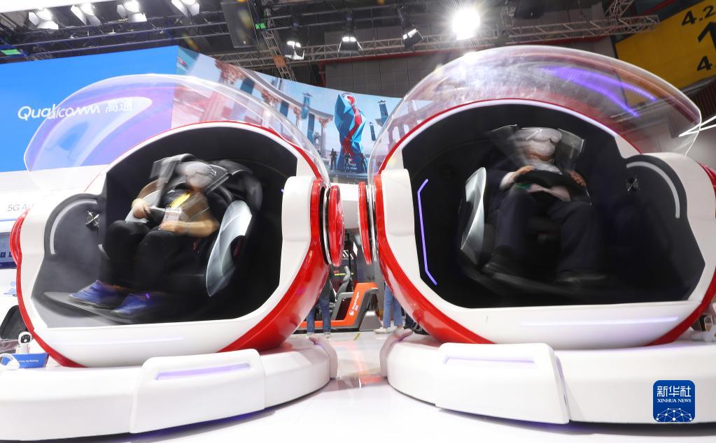 11月5日,參觀者在第五屆進博會技術裝備展區體驗一款VR游戲座椅。