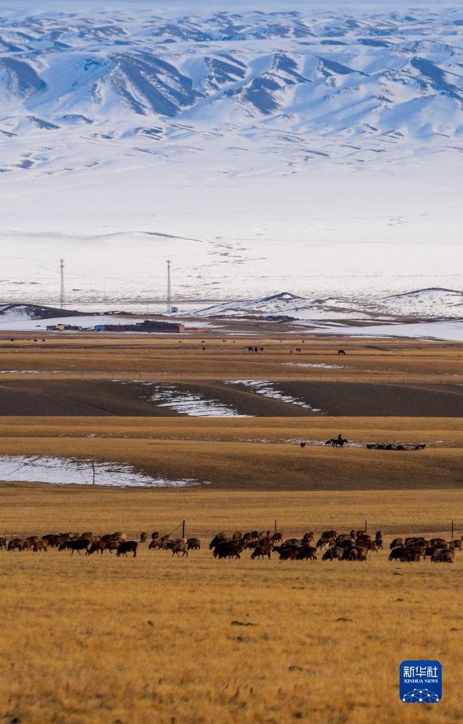 新疆裕民縣巴爾魯克山冬季牧場牧歌圖景(11月4日攝)。