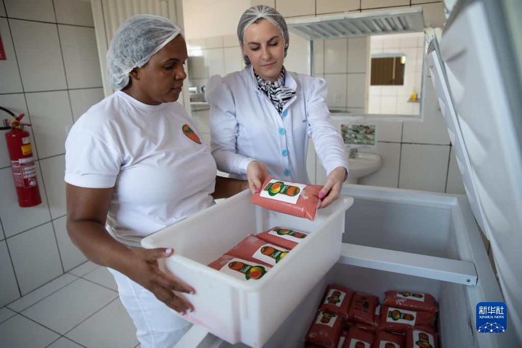 10月4日,在巴西托坎廷斯州馬利亞迪尼亞,食品工程學家格拉謝拉·帕盧多(右)和工人一起工作。