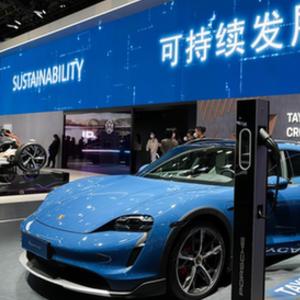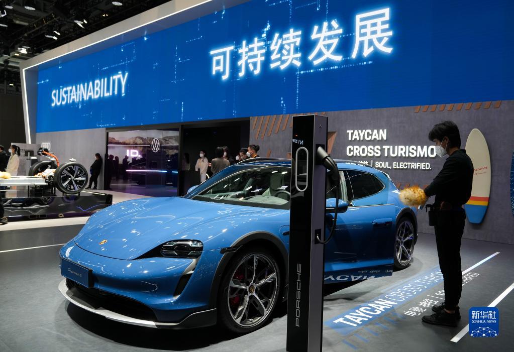 11月6日在第五屆進博會汽車展區拍攝的保時捷新能源汽車。
