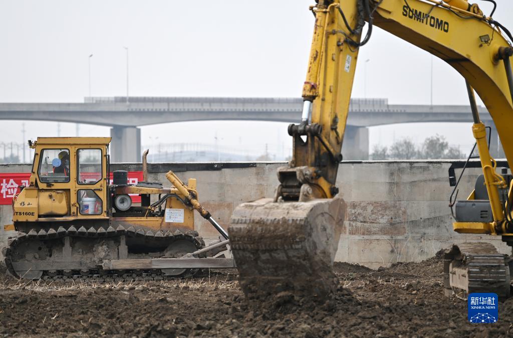 11月6日,在天津市濱海新區濱海西站,工程車輛在施工作業。