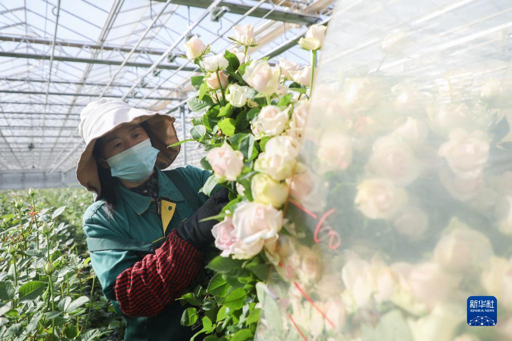 近日,甘肅省蘭州新區花卉產業基地智能溫室內的鮮切玫瑰競相爭艷,每天近十萬枝鮮切花從這里發出。近年來,蘭州新區引進先進種植設施設備、種植群體,改良花卉品種選培,玫瑰、蝴蝶蘭等高端花卉實現了全季節、全天候生產,年產鮮切花可達1億枝,不僅暢銷國內市場,還遠銷俄羅斯、哈薩克斯坦等“一帶一路”沿線國家。