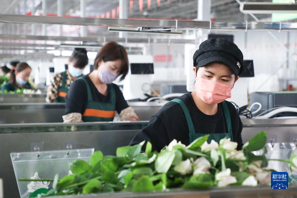 近日,甘肅省蘭州新區花卉產業基地智能溫室內的鮮切玫瑰競相爭艷,每天近十萬枝鮮切花從這里發出。近年來,蘭州新區引進先進種植設施設備、種植群體,改良花卉品種選培,玫瑰、蝴蝶蘭等高端花卉實現了全季節、全天候生產,年產鮮切花可達1億枝,不僅暢銷國內市場,還遠銷俄羅斯、哈薩克斯坦等“一帶一路”沿線國家。
