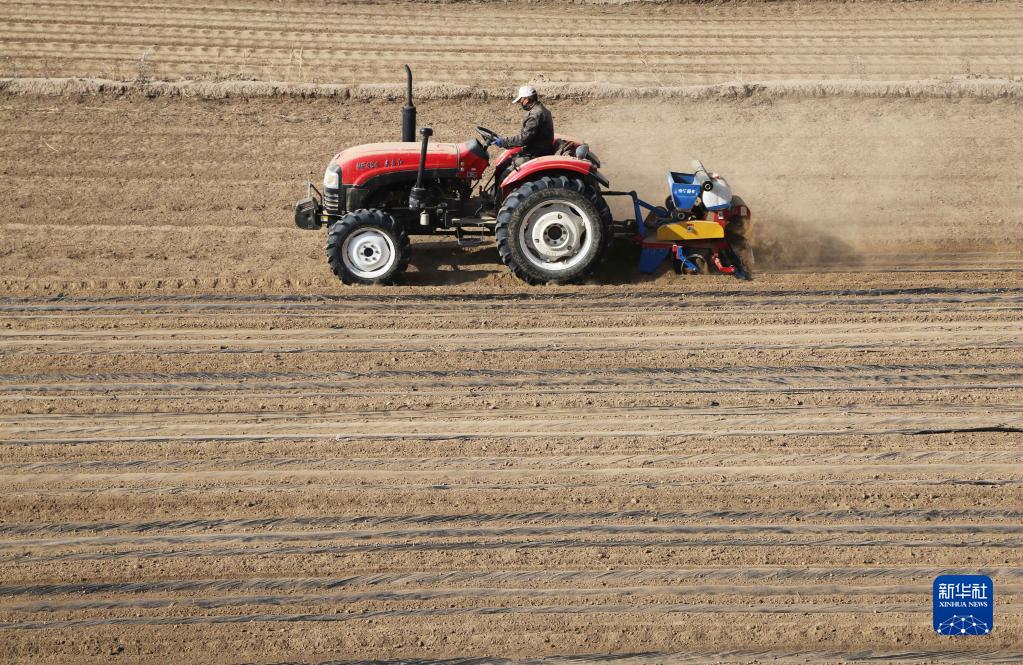 11月7日,甘肅省定西市安定區巉口鎮松川村,農民駕駛農機覆地膜。