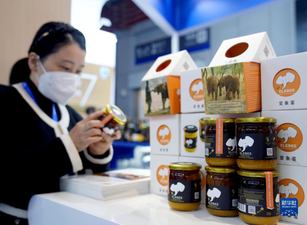 11月7日在第五屆進博會食品及農產品展區拍攝的來自贊比亞的蜂蜜。