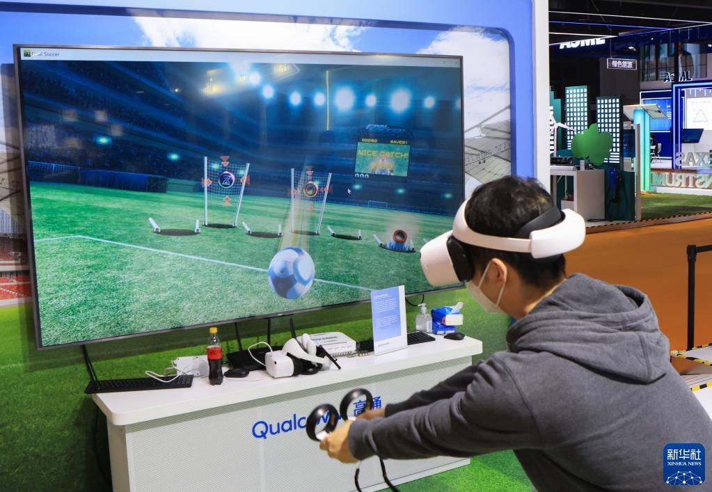 11月7日,參觀者在第五屆進博會美國高通公司展臺參加5G無界XR賽事體驗。