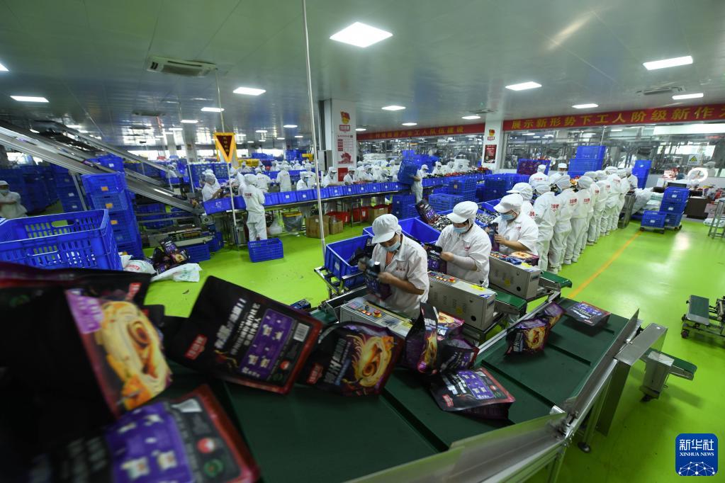 為應對即將到來的“雙十一”銷售高峰,廣西柳州市螺螄粉企業開足馬力生產,備足貨源。