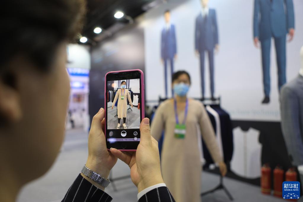 11月7日,參會企業工作人員演示服裝定制工業互聯網平臺。