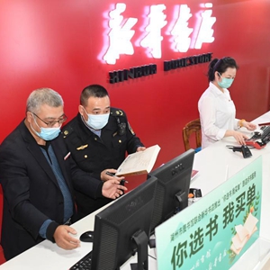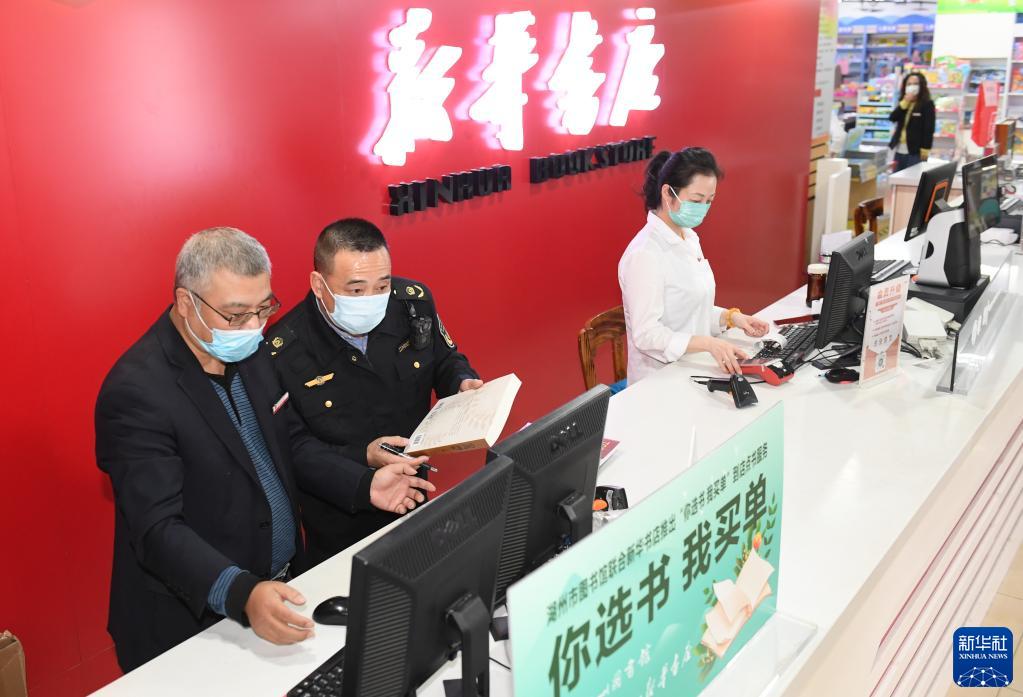 11月7日,在湖州市吳興區愛山街道一家書店,綜合執法隊工作人員對其進貨清單進行查驗。