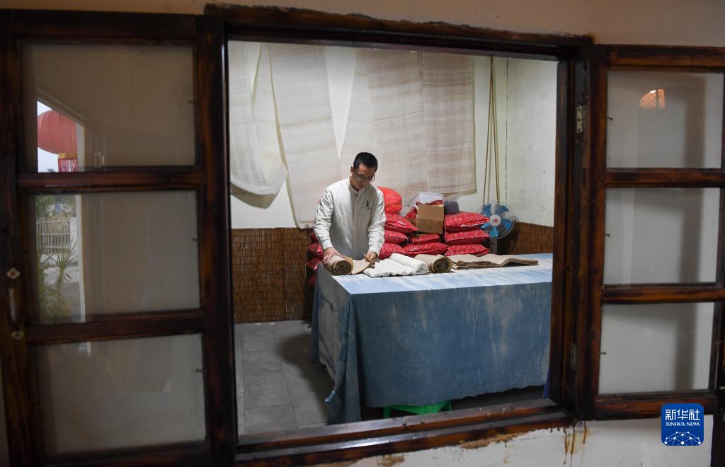 10月25日,在重慶市榮昌區通安村,青年創業者在其創辦的夏布體驗館工作。