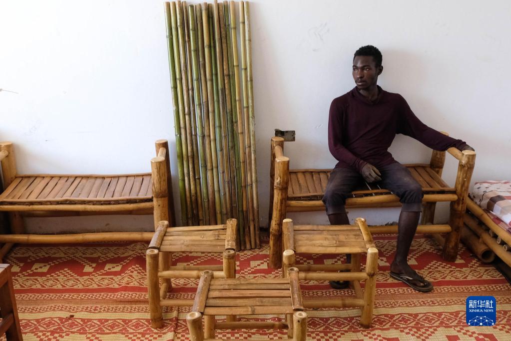 10月26日,在烏干達首都坎帕拉,烏干達竹子協會的工作人員展示竹椅。