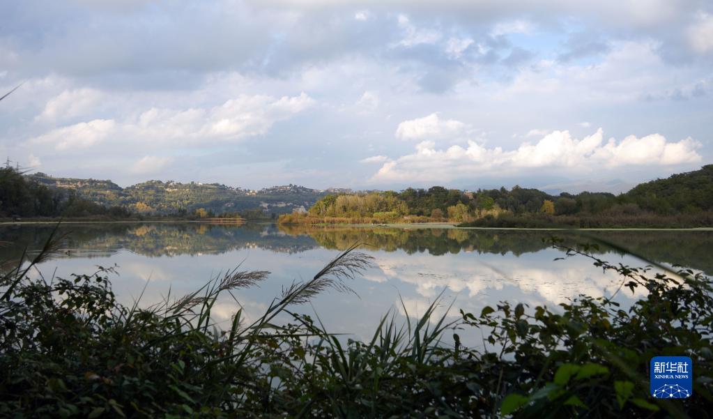 這是11月3日在意大利納扎諾泰韋雷-法爾法自然保護區拍攝的濕地風光。