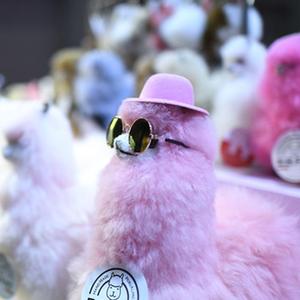 11月7日在第五屆進博會秘魯“溫暖駝”展臺拍攝的羊駝毛玩偶。