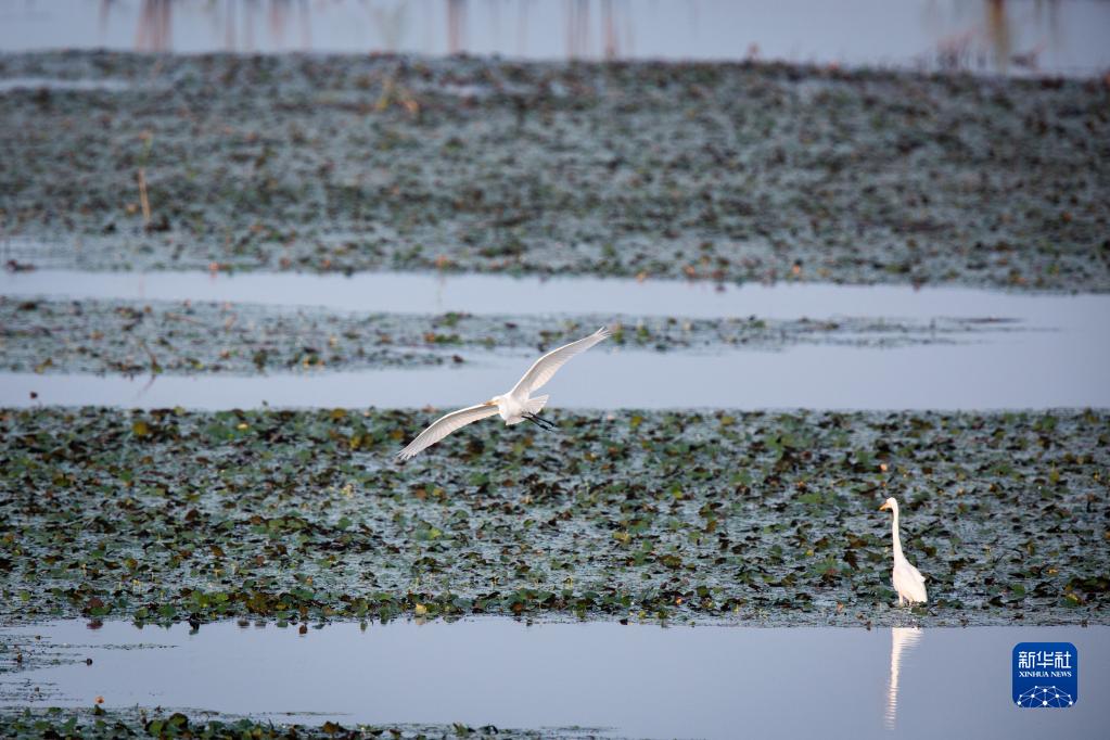 棲息在沉湖濕地的白鷺(8月3日攝)。