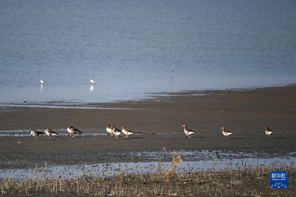 沉湖濕地內棲息的豆雁(11月6日攝)。