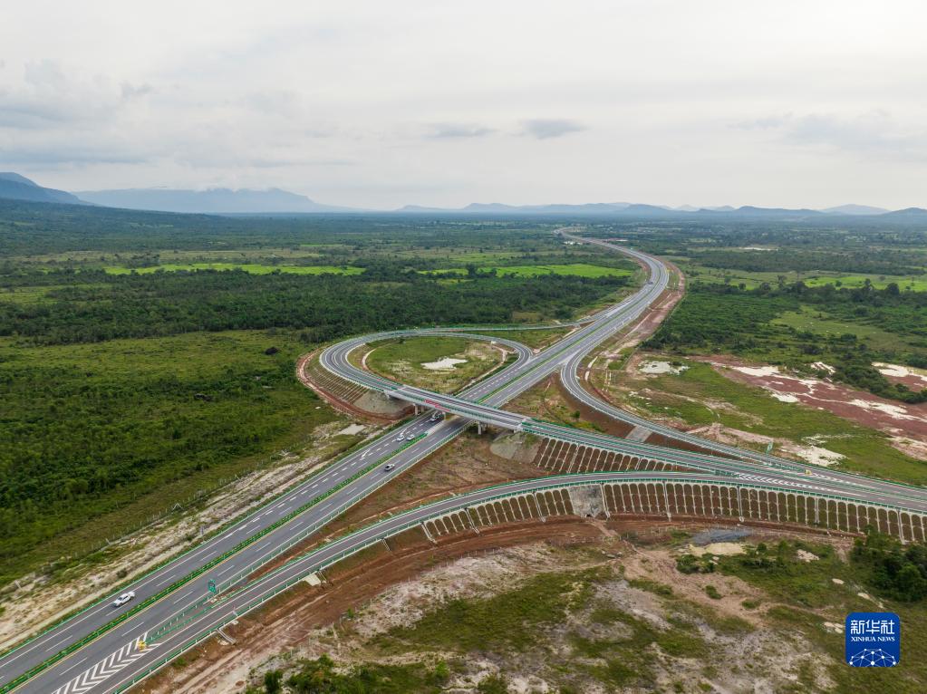這是10月28日在柬埔寨西哈努克省拍攝的金港高速公路(無人機照片)。