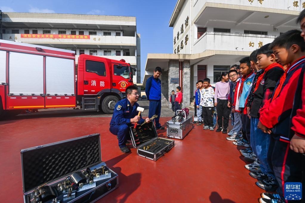11月8日,東林鎮消防隊員在給東林小學的學生們講解各類消防器材的使用知識。