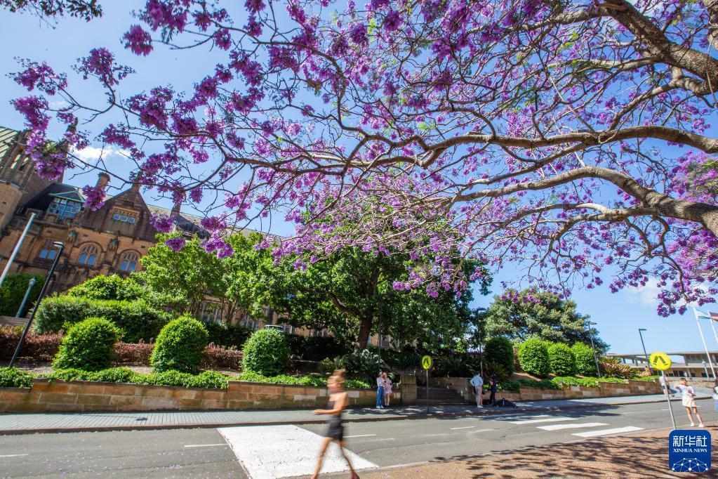 這是11月8日在澳大利亞悉尼大學拍攝的盛開的藍花楹。