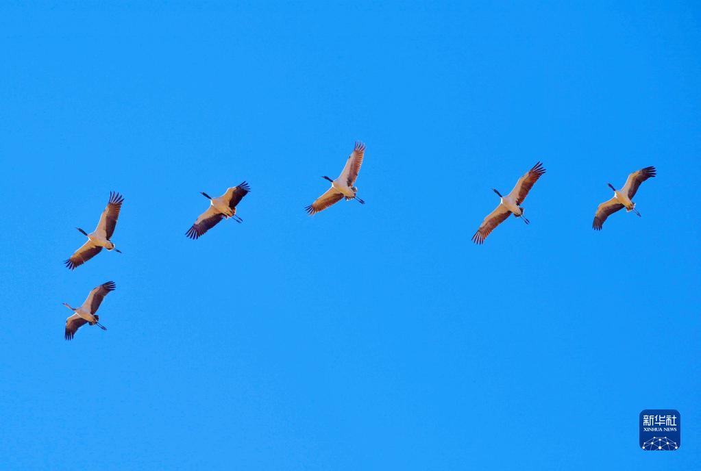 黑頸鶴在林周縣黑頸鶴自然保護區上空盤旋(11月6日攝)。
