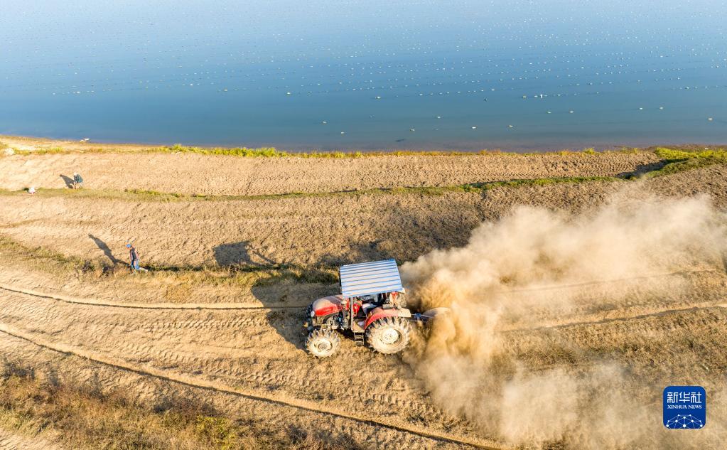 11月7日,在江西省九江市都昌縣北山鄉團山村,農民駕駛農機在田間進行開溝作業,準備播種油菜。