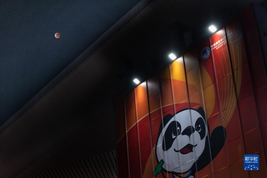 這是11月8日在國家會展中心(上海)拍攝的月食。