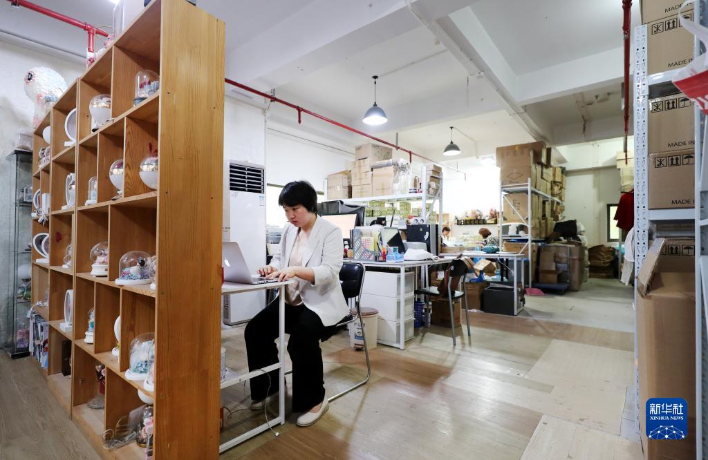 馬玉霞在位于上海的辦公室里回復郵件(2021年10月15日攝)。