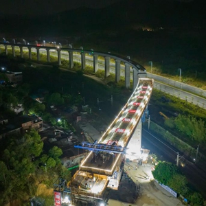 11月8日,由中鐵十一局承建的清遠磁浮旅游專線長隆特大橋跨京廣鐵路連續梁成功實現轉體。清遠磁浮旅游專線是廣東首條中低速磁浮線,項目首期全長8.014公里。
