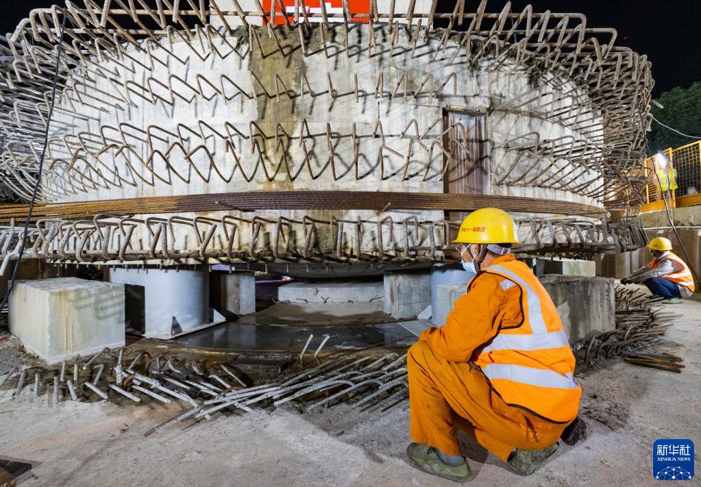 11月8日,施工人員在清遠磁浮旅游專線長隆特大橋跨京廣鐵路連續梁轉體現場作業。
