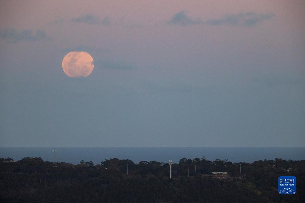 這是11月8日晚在澳大利亞悉尼拍攝的初升的滿月。