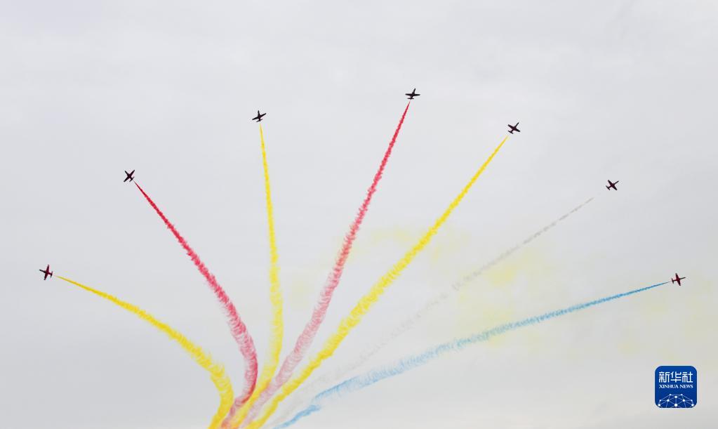 11月8日,空軍航空大學“紅鷹”飛行表演隊進行飛行表演。