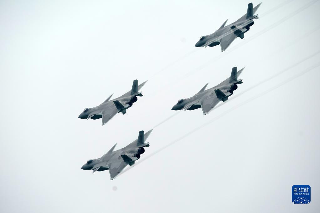 11月8日,空軍殲-20戰機在第十四屆中國航展上進行飛行展示。新華社記者 張永進 攝