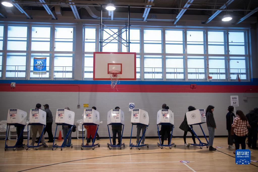 11月8日,選民在美國紐約的一處投票站參加中期選舉投票。