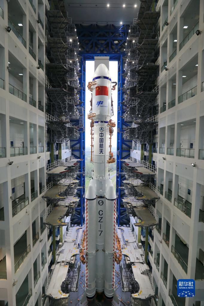 記者從中國載人航天工程辦公室獲悉,11月9日,天舟五號貨運飛船與長征七號遙六運載火箭組合體垂直轉運至發射區。