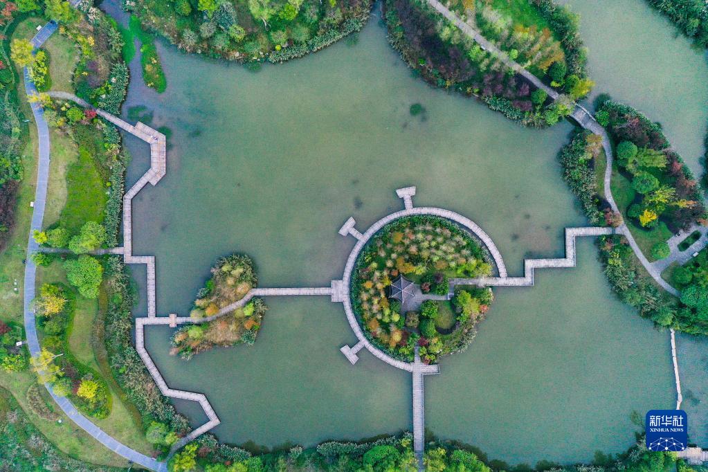 11月7日拍攝的重慶市梁平區雙桂湖國家濕地公園一帶景象(無人機照片)。