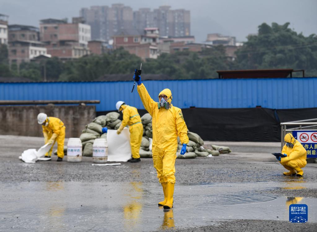 11月9日,在四川省宜賓市敘州區,演練人員進行環境監測工作。