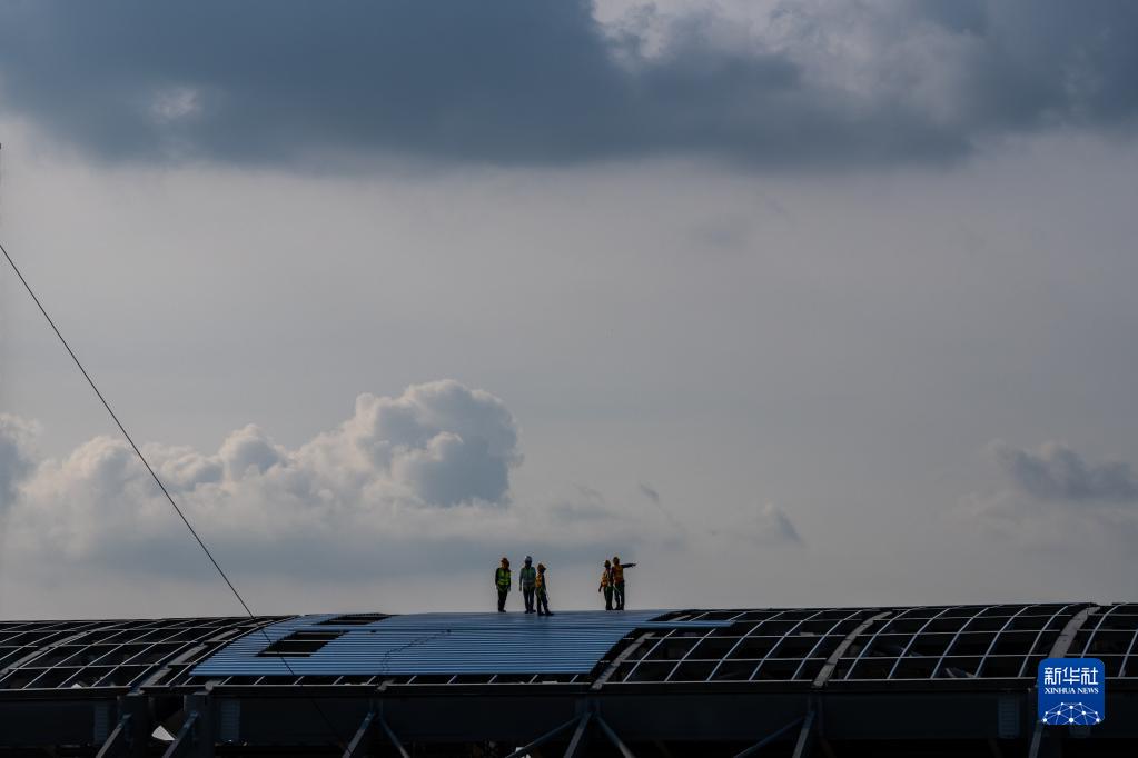 11月8日,工人在柬埔寨新金邊國際機場項目施工現場工作。