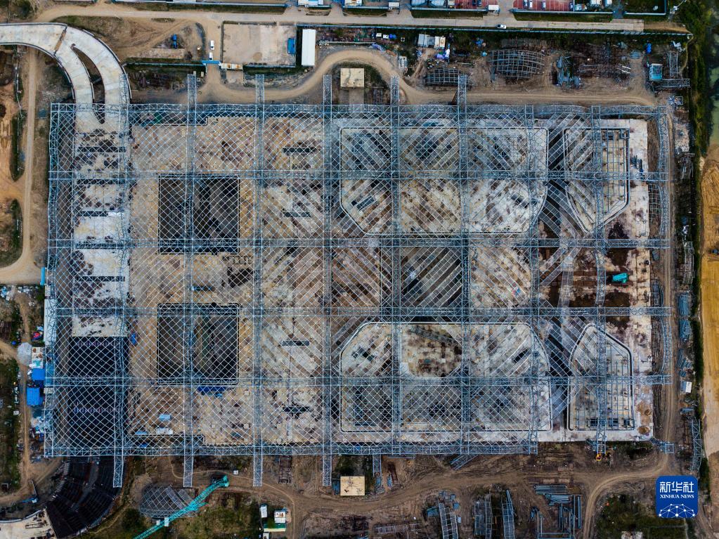 這是11月8日拍攝的柬埔寨新金邊國際機場項目施工現場(無人機拍攝)。