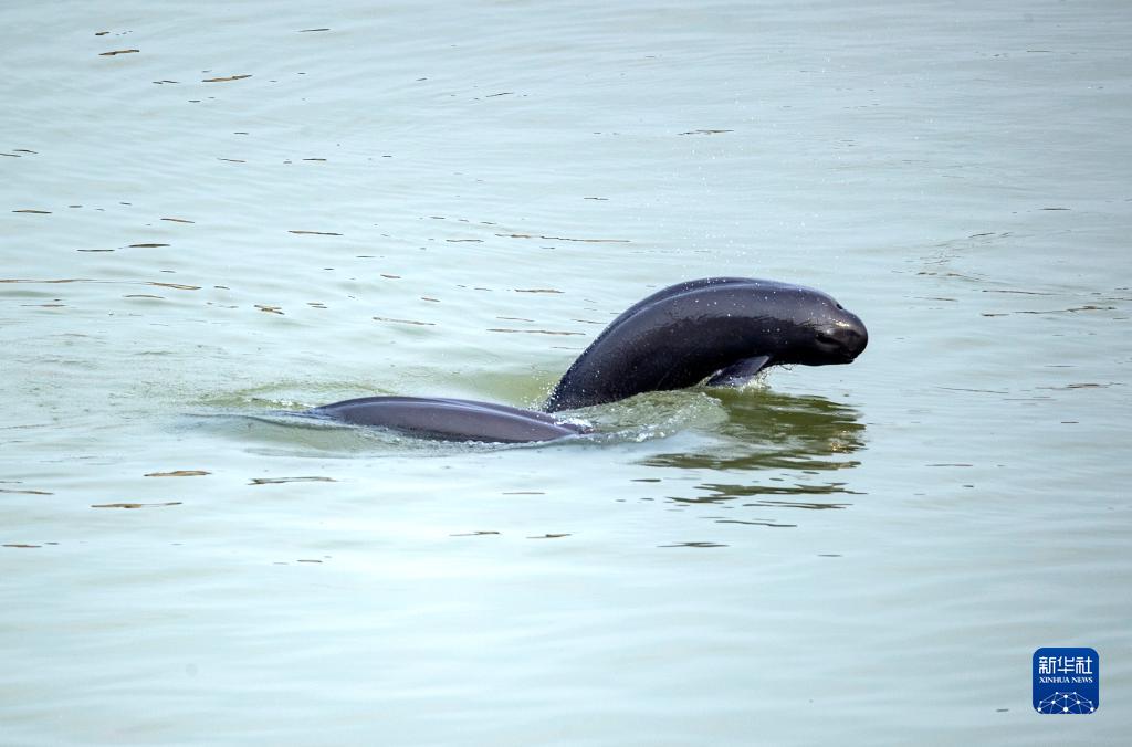 這是11月8日拍攝的長江葛洲壩下游水域中的江豚。新華社發(文振效 攝)