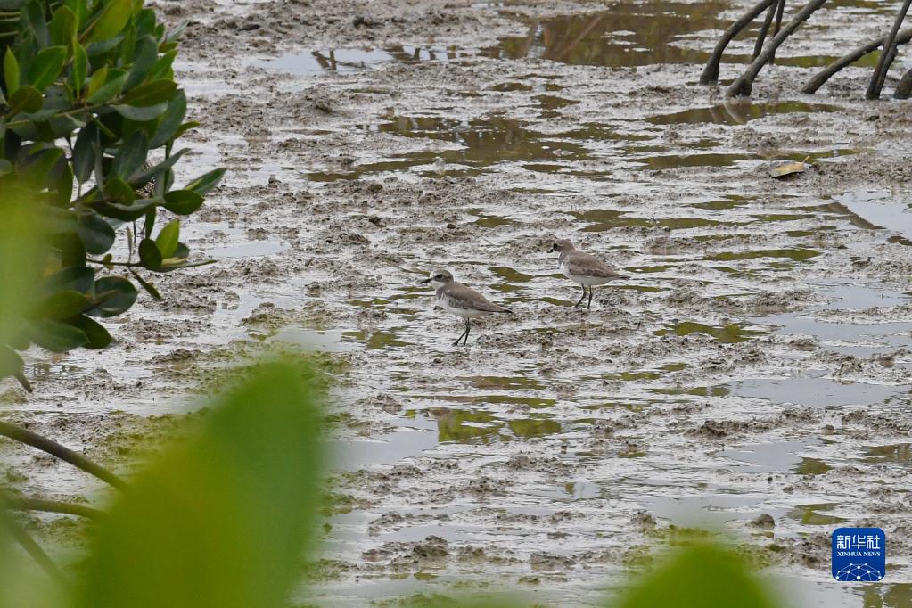 11月8日在海南省儋州市新英鹽場濕地拍攝的水鳥。新華社記者 蒲曉旭 攝