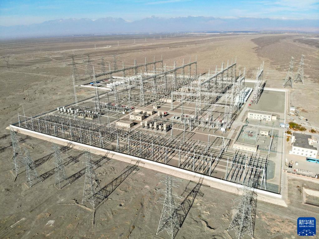 這是11月9日拍攝的新疆哈密至甘肅敦煌750千伏輸變電工程哈密變電站(無人機照片)。