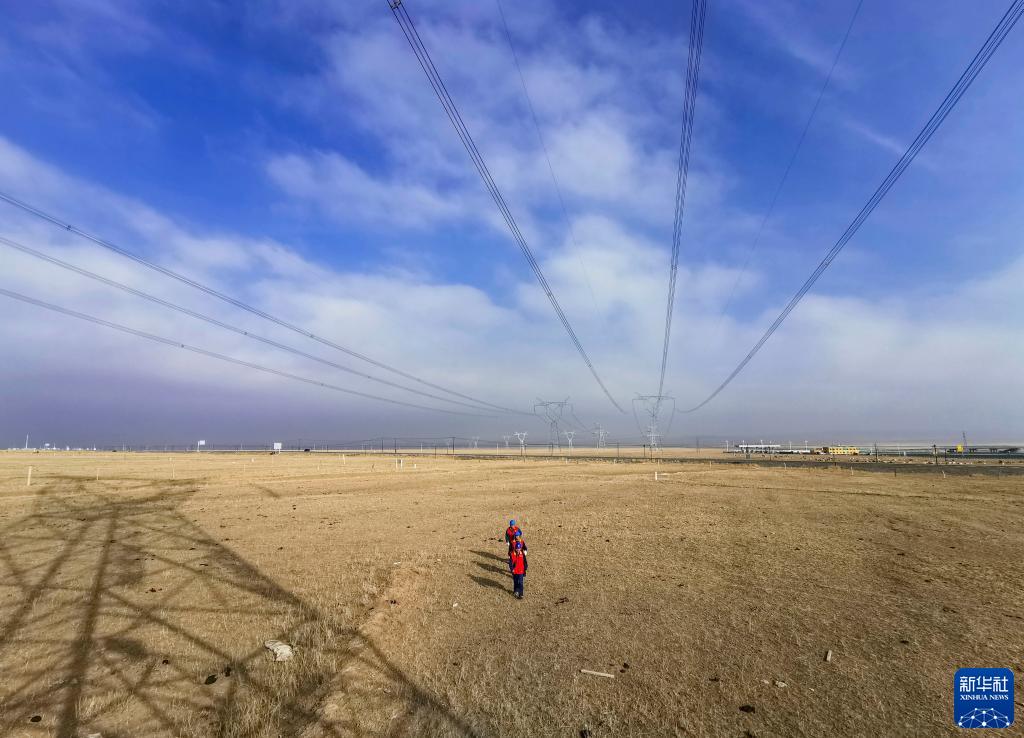 國網哈密供電公司運檢人員對跨越東天山的750千伏輸電線路進行特巡(11月9日攝)。